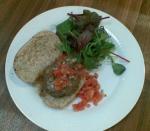 First Bruce commented on the quality of proper mince, good quality, ruby red, minced coarsly not too fine and he preparerd homemade beefburgers, like this:- best coarse mince, a little finely chopped onion, garlic puree, salt & pepper, fresh thyme & parsley and a dash of Worcestershire Sauce, gently mixed together by hand and then formed into a ball and pushed into a metal ring to form a nice thick burger. Cooked for 2 or 3 minutes on each side to leave a nice juicy burger. if you fancy a cheeseburger Bruce suggested incorporating a ball of blue Wensleydale into the ball of burger meat before pressing into the burger shape so the ball of cheese is in the middle of the burger and will melt and ooze as it cooks. Served in a bread bun with a green salad and home made salsa. The salsa was just skinned & deseeded tomatoes, chopped red onion or shallot, salt & pepper and olive oil.