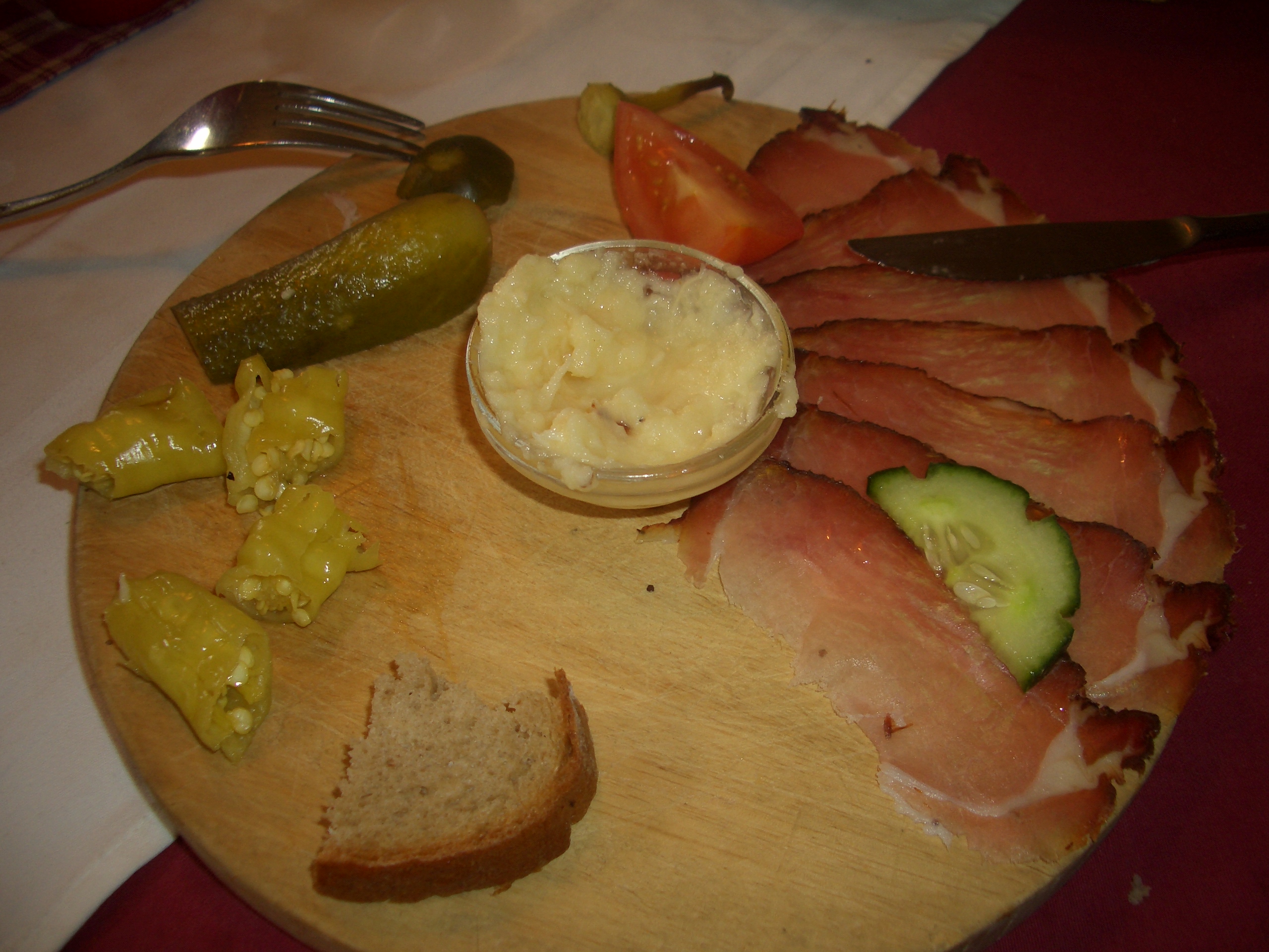 Cured ham and horseradish at the mountain restaurant Adlerhütte, Kitzbuheler Horn, Austria