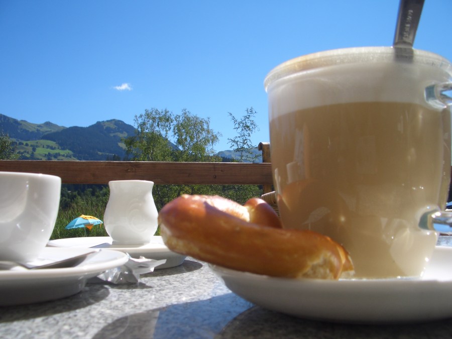 pretzel & latte at the Schwarsee