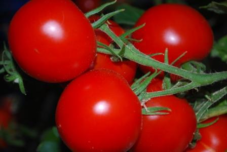 Tomatoes on the vine in the greenhouse