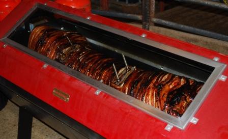 Full Hog cooking in the hog roast machine, crackling looking good!