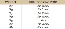 Place your turkey or turkey crown in an oven pre-heated to 230°C/450°F/Gas 8. Cook at this temperature for the first 30 mins (or for the first hour for birds over 5kg) and then lower the oven temperature to 190°C/375°F/Gas 5. Total cooking time will be approximately 30-35 mins per kg. Please see table below.