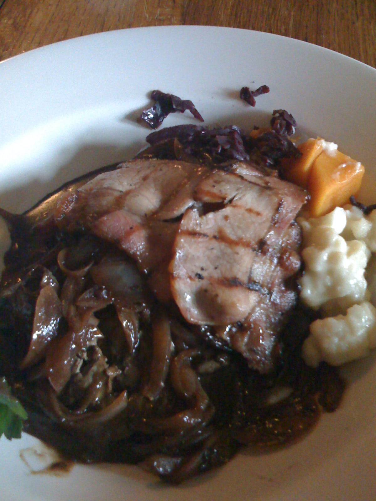 Liver & Onions with Bubble & Squeak, Red Lion, Burnsall
