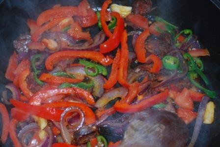 - soften the onions in a little rapeseed oil, add crushed garlic