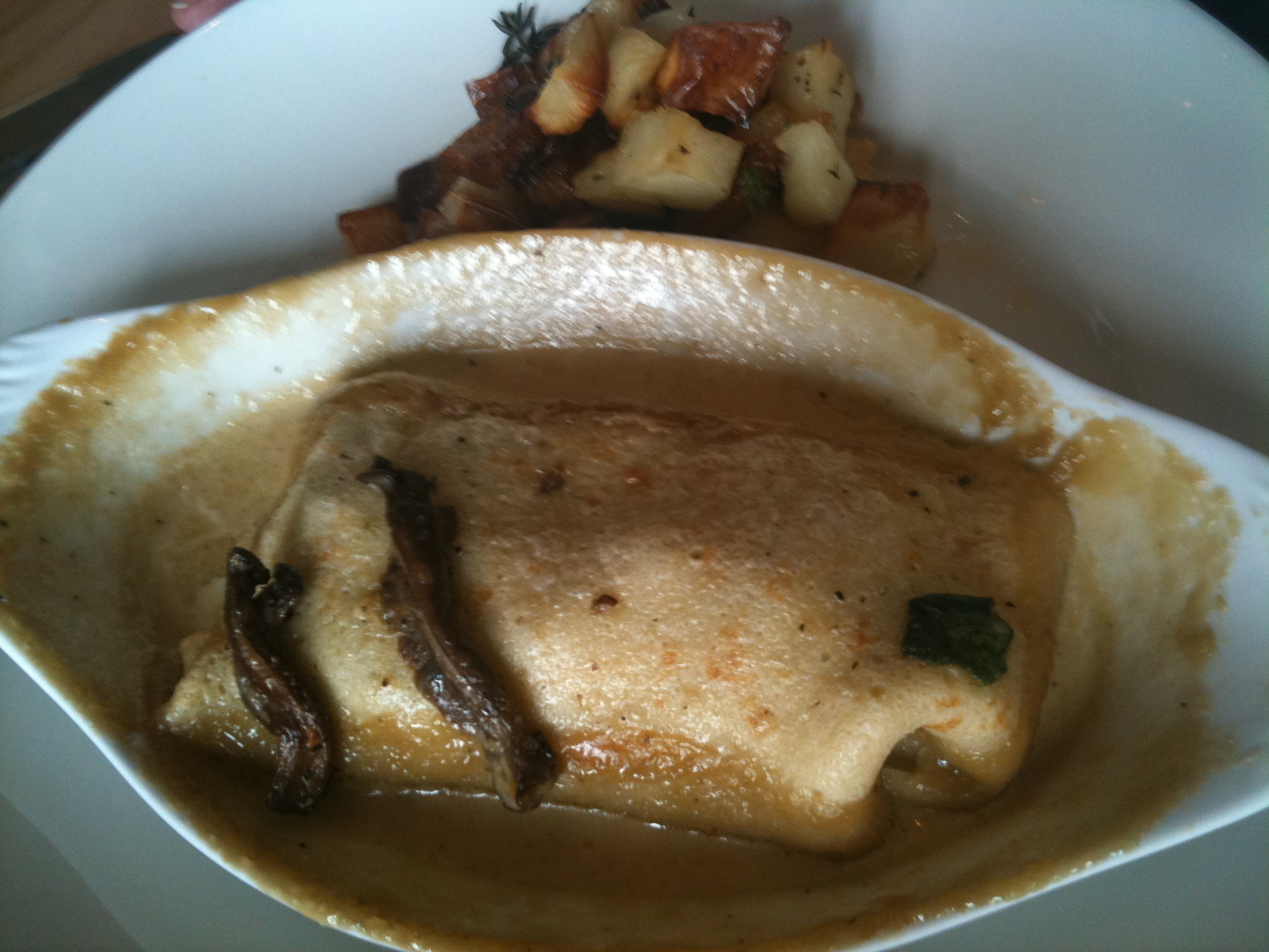 The menu gives the option to sample a lot of the dishes in smaller portions which is great at Lunchtimes or when you want to try a selection of the great dishes. Our party of 3 tried a combination of starters and the “smaller appetite” dishes including melt in the mouth Pork belly with chestnut & apple, tasty Haddock fishcake with wilted spinach and fantastic homemade tartar sauce, Mushroom & spinach pancake with a Yorkshire Blue cream sauce (you can ask for the sauce without the Yorkshire Blue if you prefer), a very rich Game hotpot with sage (similar to the dish Richard & Stephanie demonstrated at Take 3 Chefs), real Pork Sausages with bubble & squeak and an excellent crusty Steak pudding & mash, to finish just 1 dessert was tried (it was lunchtime!) the Festive crème brulée poached pear and shortbread which was delicious. All dishes are homemade, prepared to order and very tasty. Total bill for 3 including drinks was £50.