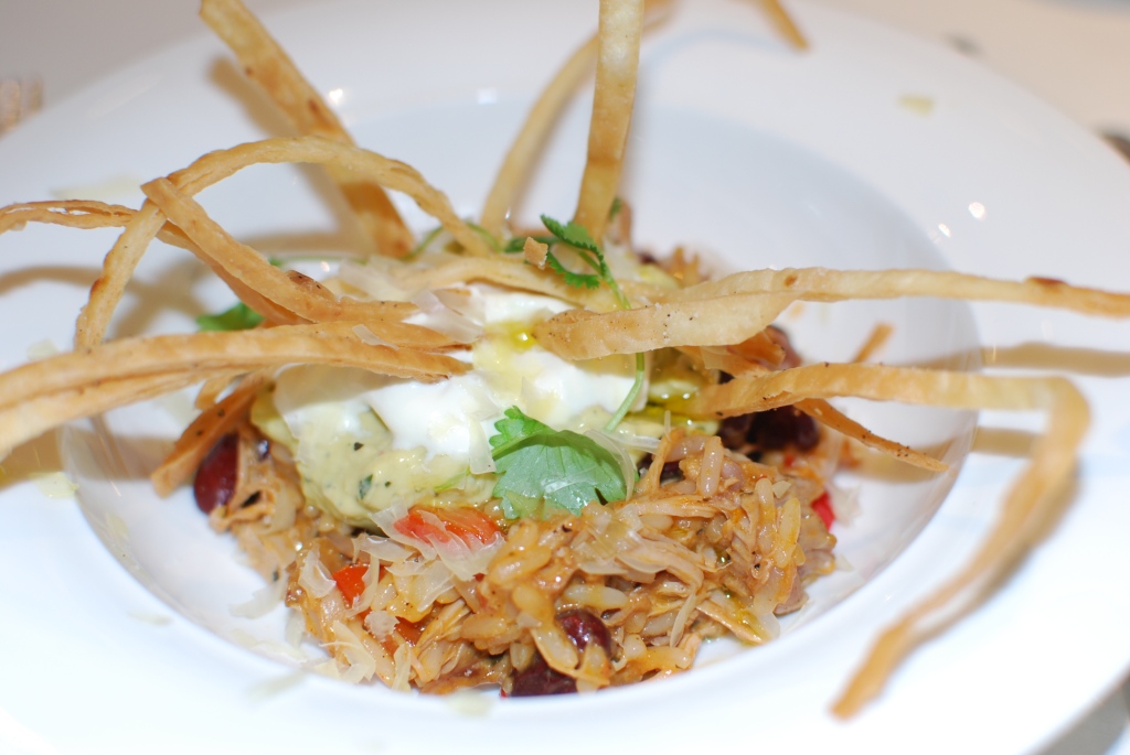 For starters I choose the Pulled Pork with rice, beans and tortillas, the divine pastry straw style tortillas a great touch. Accompanied with a fruity Kiwi Sauvignon Blanc, again from The Best Range @ £7.94 a bottle.
