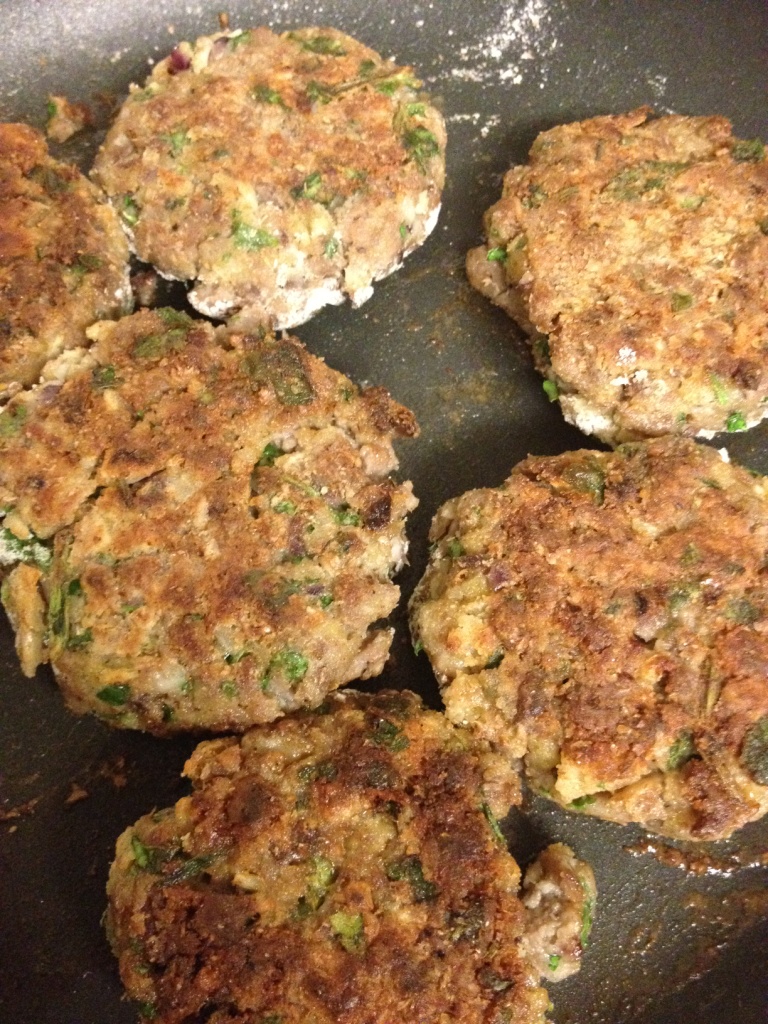 - mix well until well blended and form in your hands into balls and then flatten into a fishcake/burger shape
