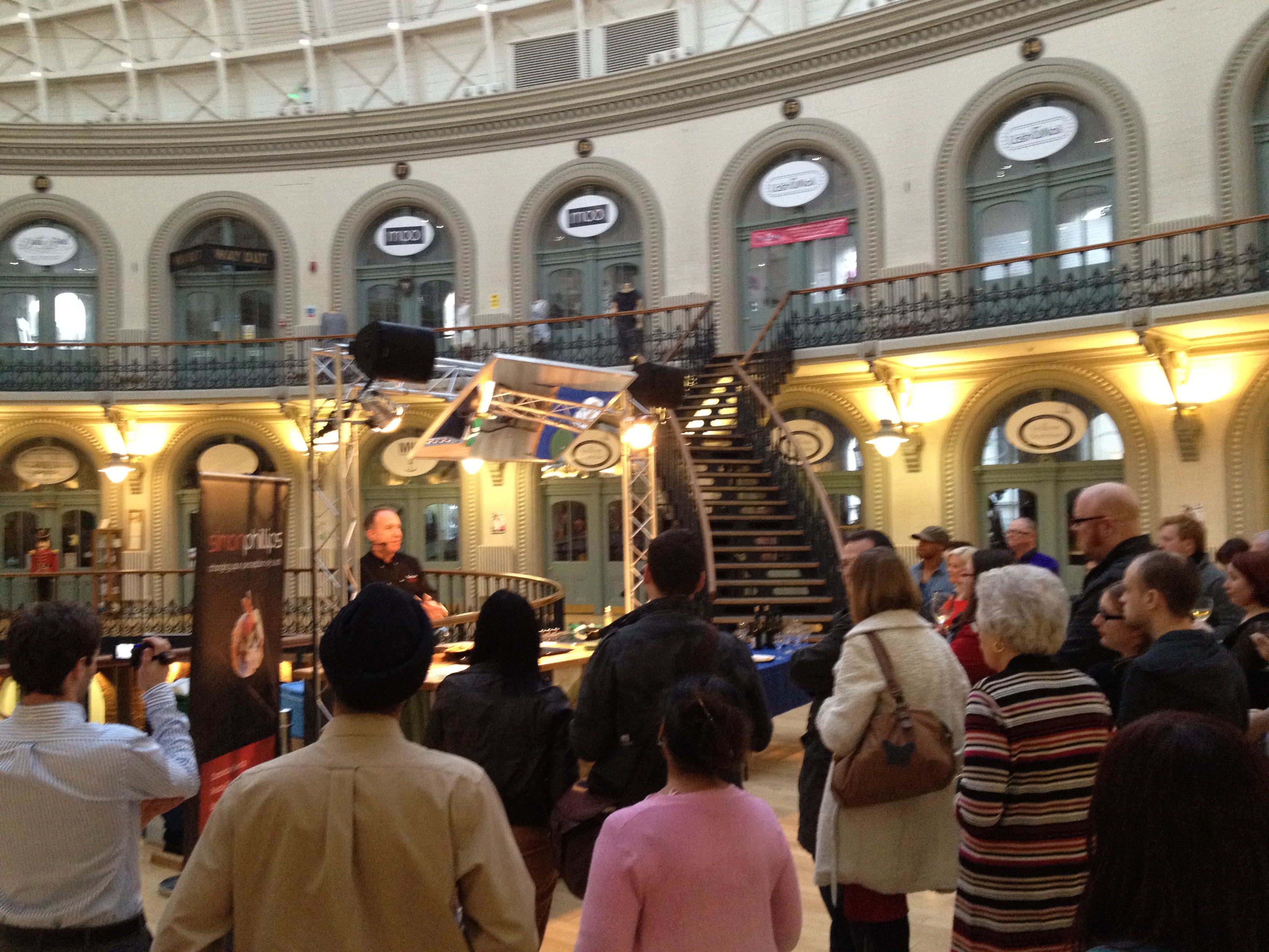 As part of #GoodFoodFriday in Leeds and in conjunction with Cornucopia I experienced some unexpectedly Yorkshire food & convivial company at the Corn Exchange in Leeds. This was truly Yorkshire Fusion Food, Leventhorpe Wine, Shepherds Purse Cheese & Yorkshire Chorizo in a Sushi Fusion created by Simon Phillips the Sushi King. Anyone for Roast Beef & Yorkshire Pudding Sushi, Yorkshire Blue & Asparagus Sushi or maybe even some Yorkshire Chorizo Sushi….