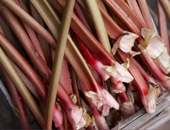 2. Cut two thirds of rhubarb into pieces about 5cm long. Place in an ovenproof dish and sprinkle with 55g of caster sugar. Roast in the oven for 20 minutes or until tender.