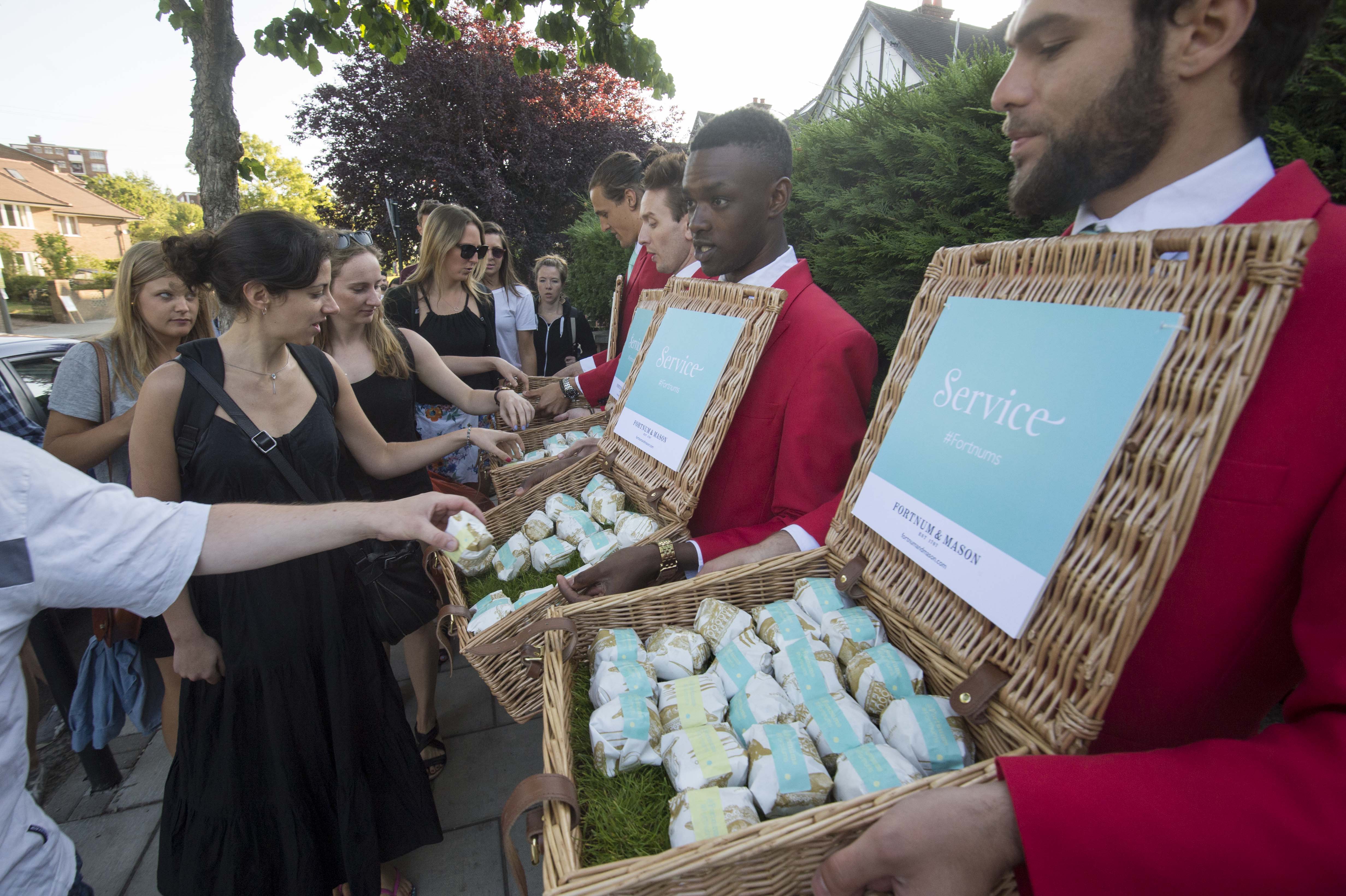 “Early risers joining the queue for Wimbledon tickets got an unexpected surprise this morning when a team of suave Fortnum & Mason red tails descended on SW19 to hand out some much needed sustenance. Dressed to the nines, the dashing fleet treated tennis goers to gourmet Scotch Eggs – rumoured to have been invented by Fortnum’s in 1738.”