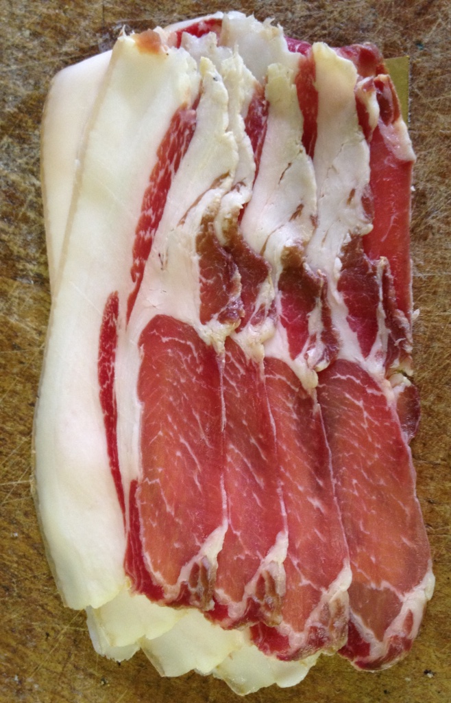 This is cured pork from the hind legs of the pig. The curing process is the same as that used for bacon, a highly skilled method of preserving meat using salt (either in a brine solution or dry cured using a salt based rub). Dry curing tends to prduce more subtle flavour and an improved meat texture. After curing, gammon may also be smoked to give a more intense flavour.