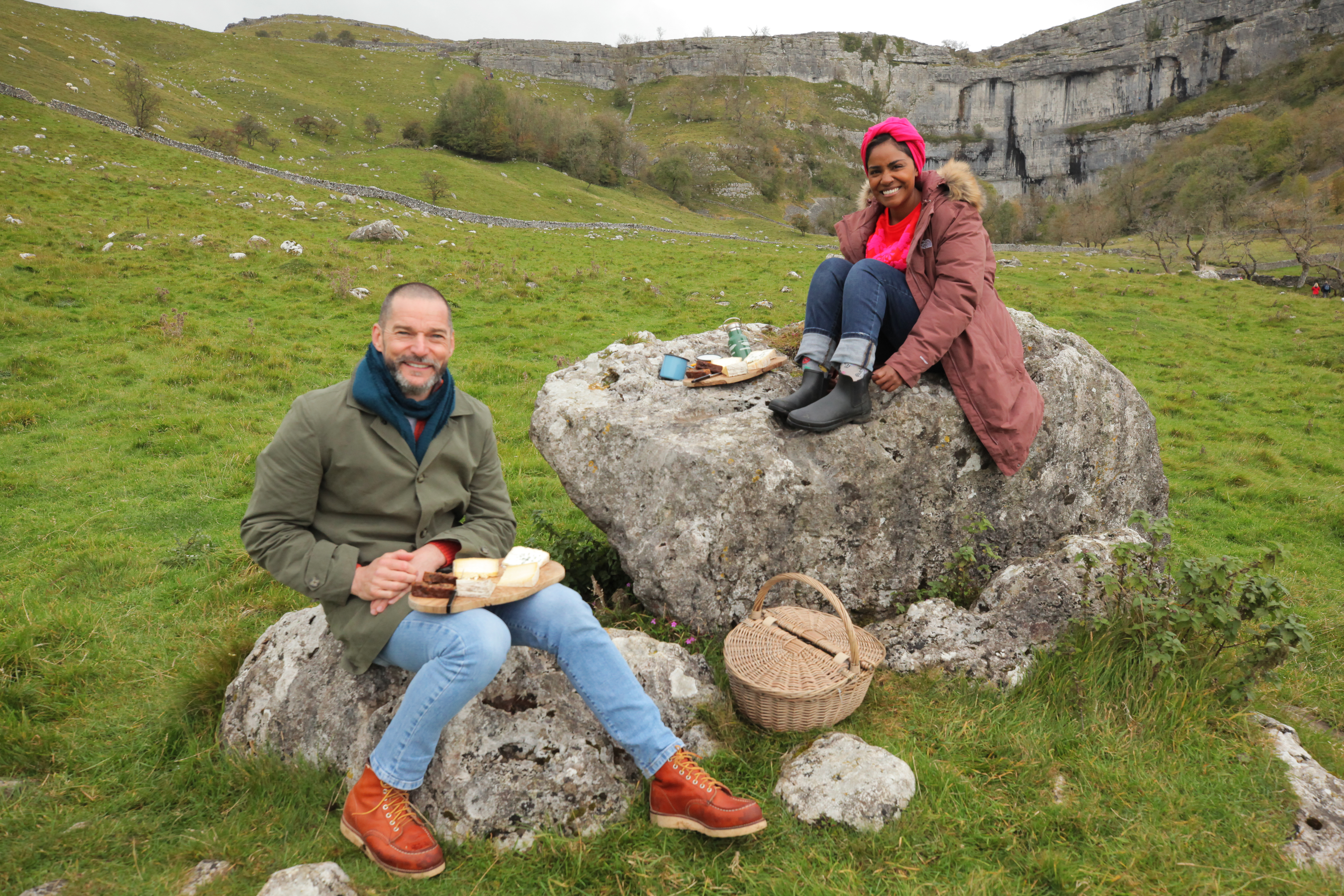 Fred & Nadiya visit Malham Cove to picnic on Wensleydale Cheese and Fruit Cake.